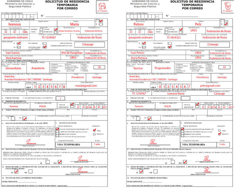 Временную визу в Чили можно получить в одном из двух качеств - как "основной заявитель" (titular), либо как "зависимый член семьи" (dependiente).