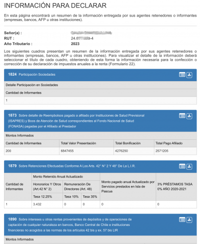 Если вы выбрали на предыдущем шаге частичное покрытие, то, скорее всего, вам будет причитаться возврат налога: сразу под данными пользователя будет синий прямоугольник с текстом "Con la información que cuenta el SII, se ha determinado una devolución de Impuestos anuales a la Renta de $523.107".