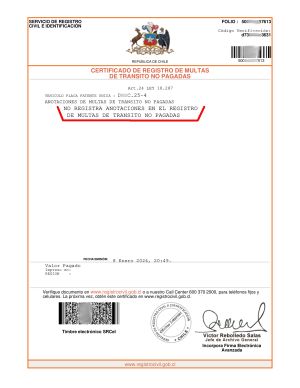 Multas de Tránsito No Pagadas. Справка о неоплаченных штрафах за нарушение ПДД. Необходима при ежегодном обновлении Permiso de circulacion. Получать на сайте Рехистро Сивиль.