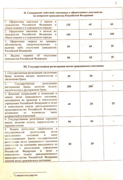 Тарифы консульства РФ в Чили с 29 октября 2013 года. Страница 2.