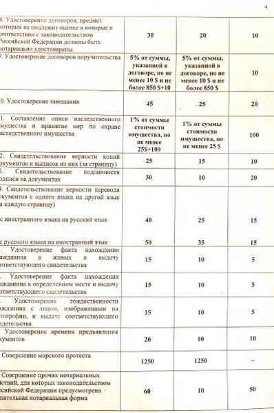 Тарифы консульства РФ в Чили с 29 октября 2013 года. Страница 4.