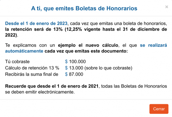 - Выпуск boleta de honorarios (чек о полученном гонораре)