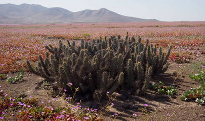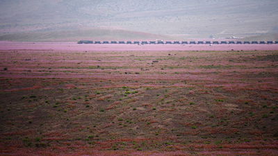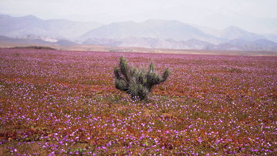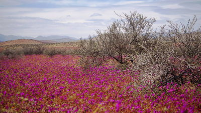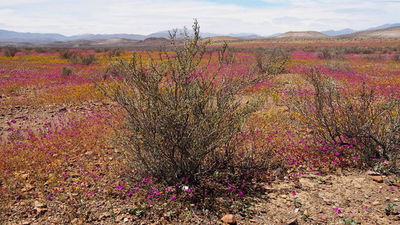 После дождей весной (сентябрь - ноябрь) наблюдается феномен цветущей пустыни. За этим поворотом открывается живописный пейзаж - горы, поля, железная дорога Ferronor, по которой вывозится руда с шахты. Можно видеть людей, которые специально приехали наблюдать это явление и установили палатки. Территория очень большая, можно проехать пару километров и очутиться в полном уединении.