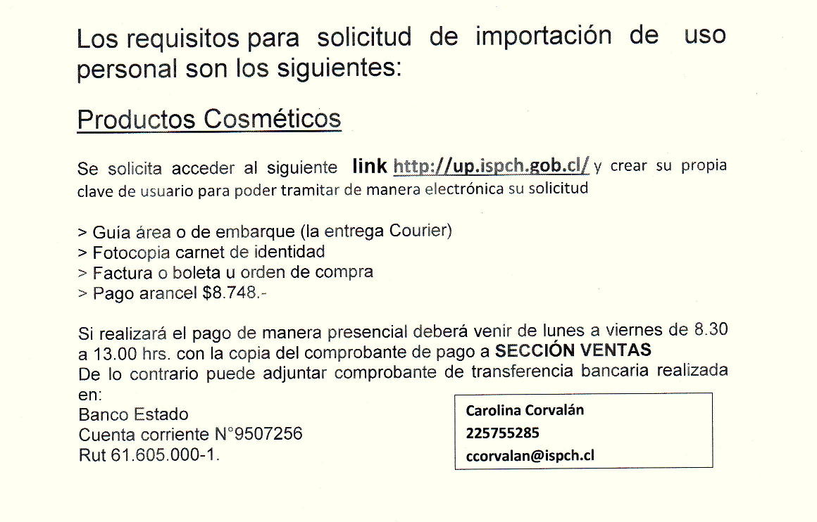 Порядок действий для регистрации на сайте Минздрава Чили для получения сертификата на ввоз косметики для личного пользования. Ноябрь 2017 года.