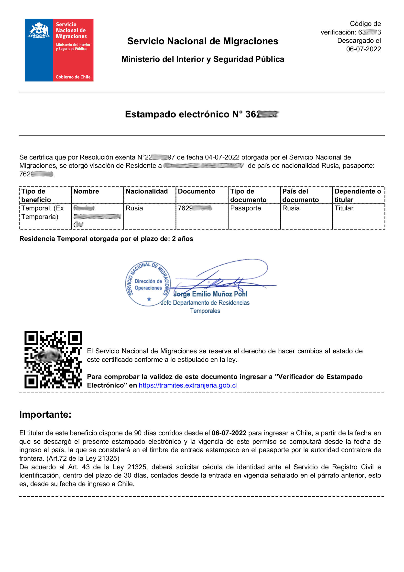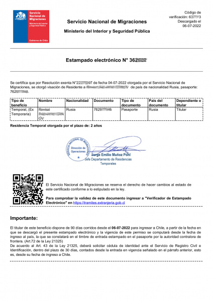 Электронная виза (Estampado Electrónico). Документ, который генерируется в формате PDF на сайте Миграционной службы после одобрения временной визы.