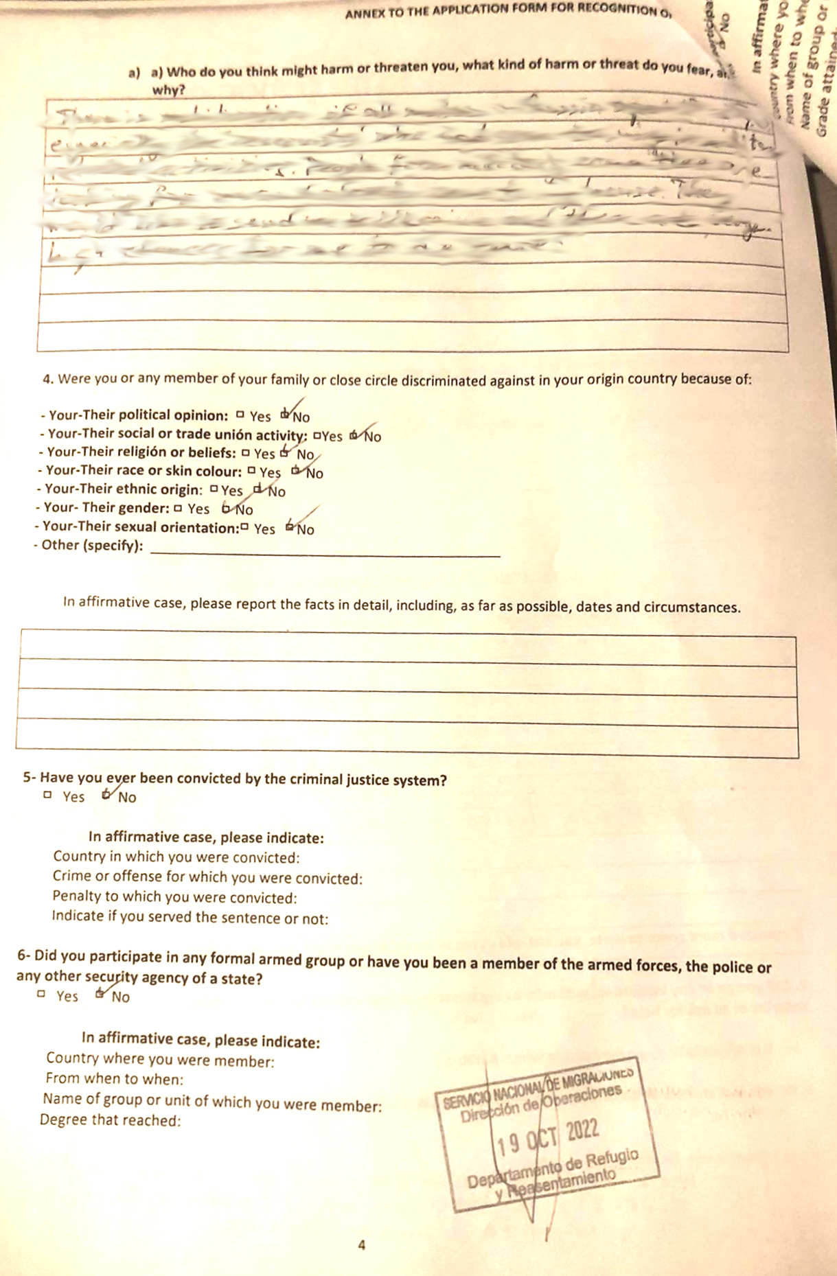 Приложение к анкете беженца, страница 2
